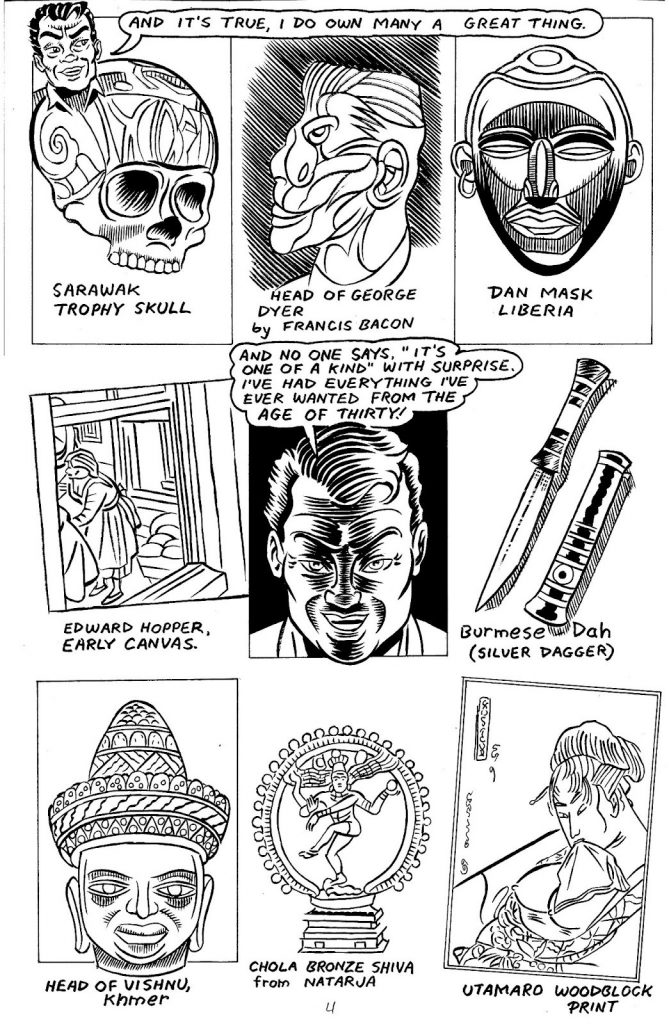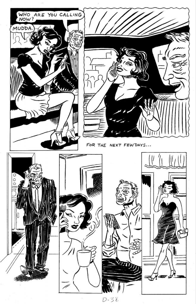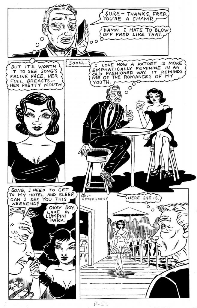 For example, in the Siamese Nights story, if a man is wearing a black suit, I’ll just sling, smear ink all over it. Gesture, contour, and mass! It’s alive, it looks fucking great! In rock & roll parlance: It swings, baby!
