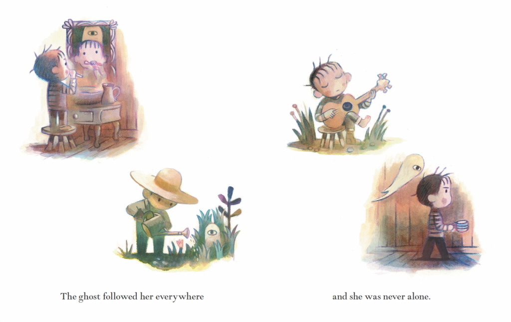 J: Comics Class was one of your earliest published works, and certainly something I’d related to, perhaps now more than ever. But I wanted to ask you about some of the books you’re coming out with right now. To start, there’s your storybook, Aggie and the Ghost