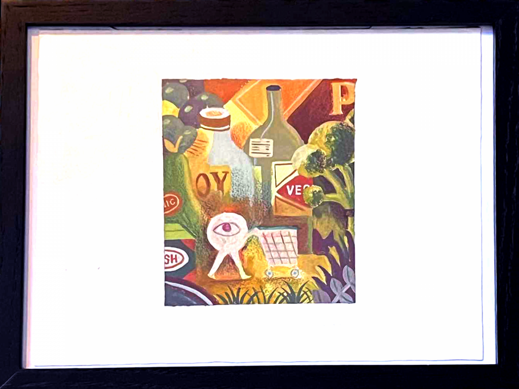 J: Yeah! I got one of your artworks up there – the guy pushing a grocery cart.
